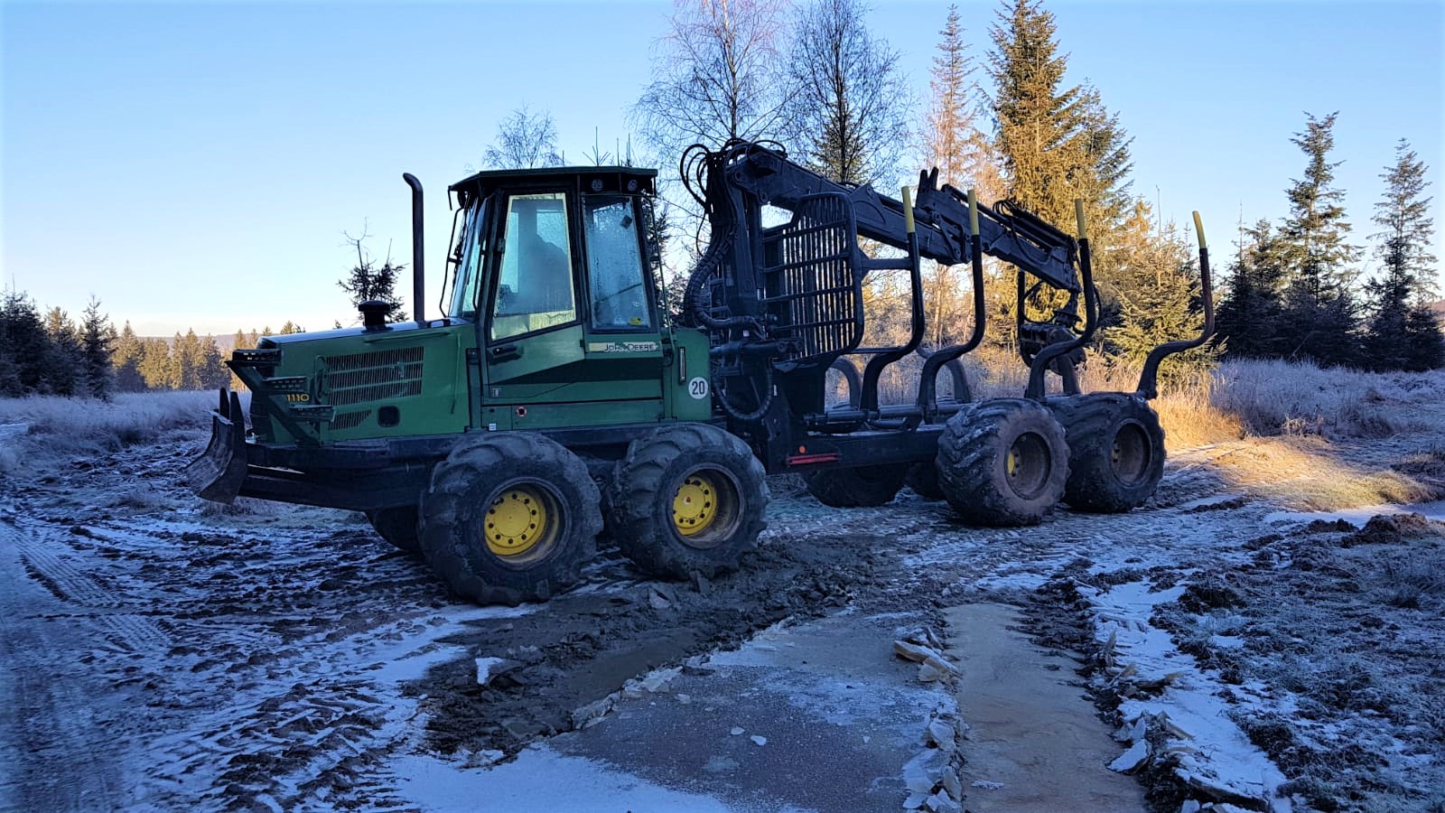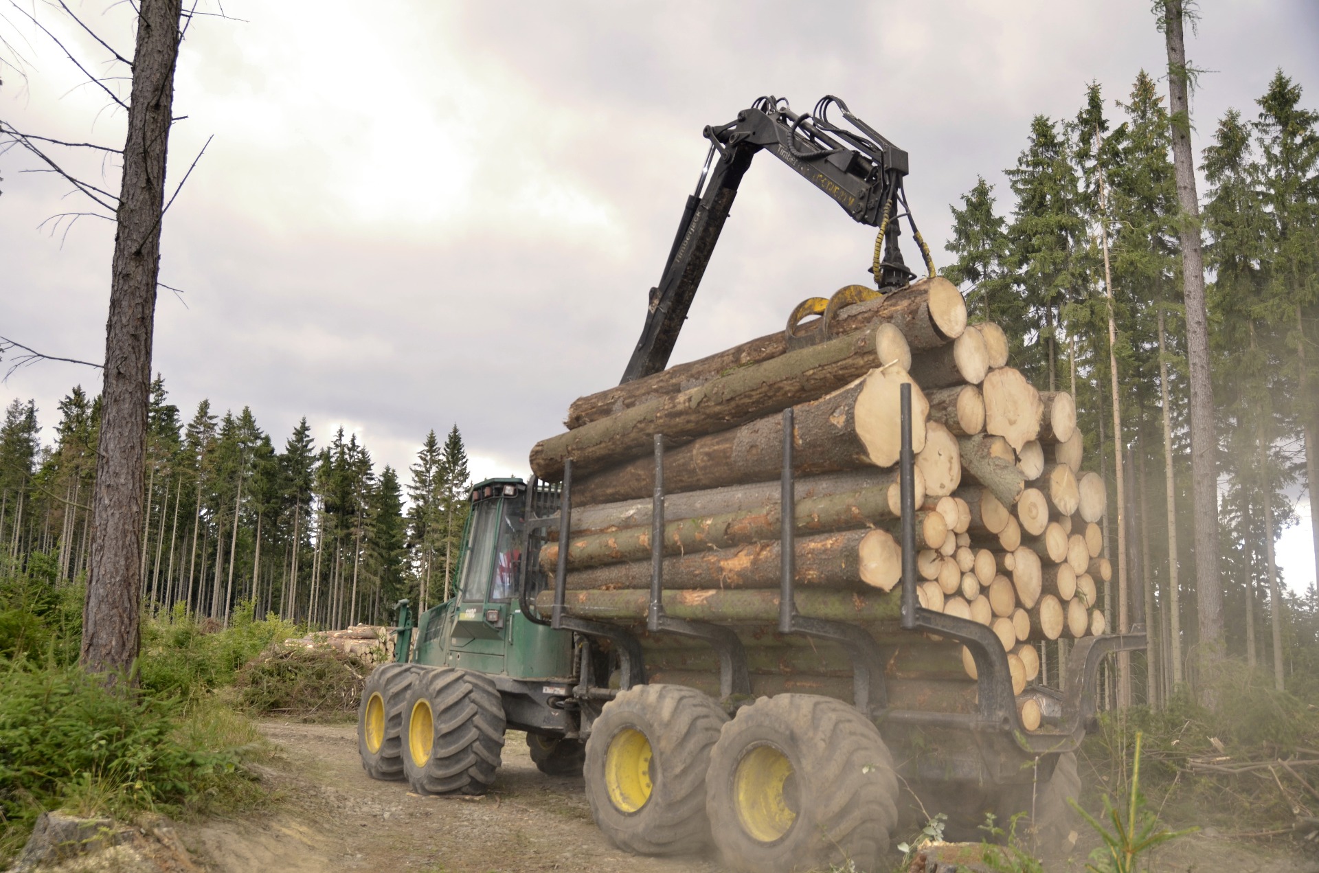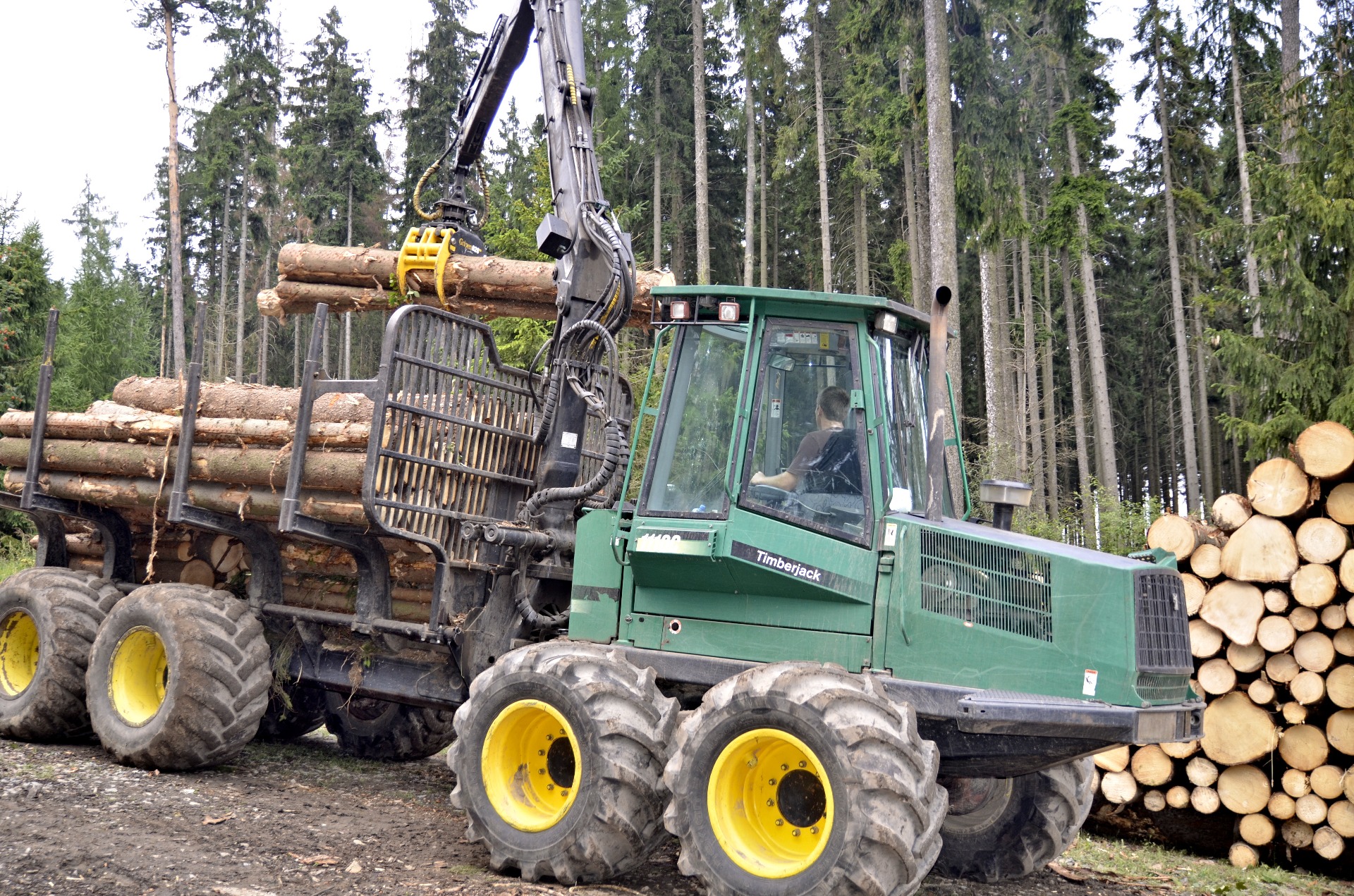 Vyvážecí traktor vhodný pro delší transport vytěženého dřeva. (1ks)